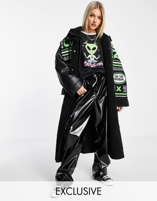 COLLUSION - Sort longline-aviator-jakke i imiteret læder