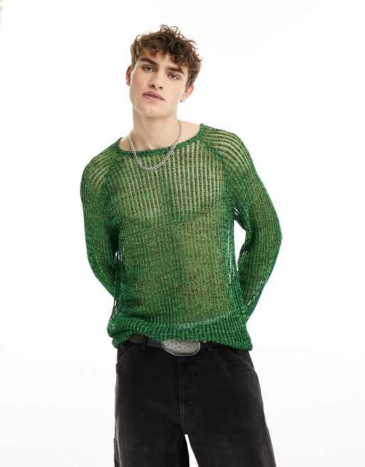 COLLUSION - Sort og grøn striktrøje i åbne sting med snoet garn