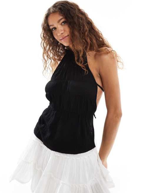 COLLUSION - Sort top med halterneck og stropper på ryggen