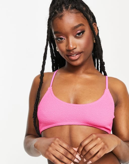 COLLUSION - Sæt med bikinitop & bikinitrusser med ekstra høj benskæring i lyserødt krølstof