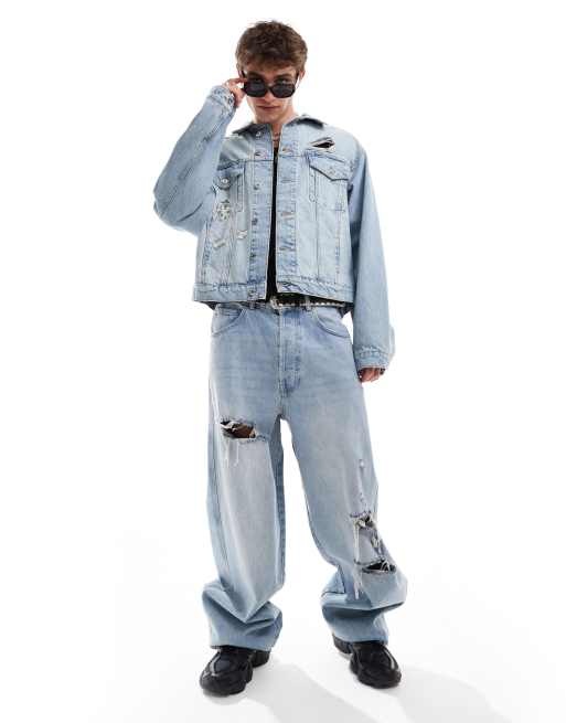 COLLUSION - Sæt med truckerjakke med flænger og jeans i denim i lys vask