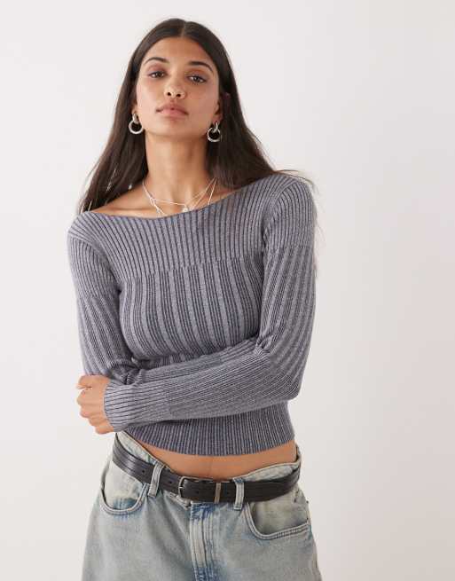 COLLUSION - Strikket og forvasket offshoulder-top med lange ærmer