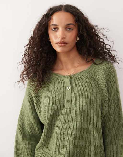 COLLUSION - Striktrøje med knapper og raglandetaljer