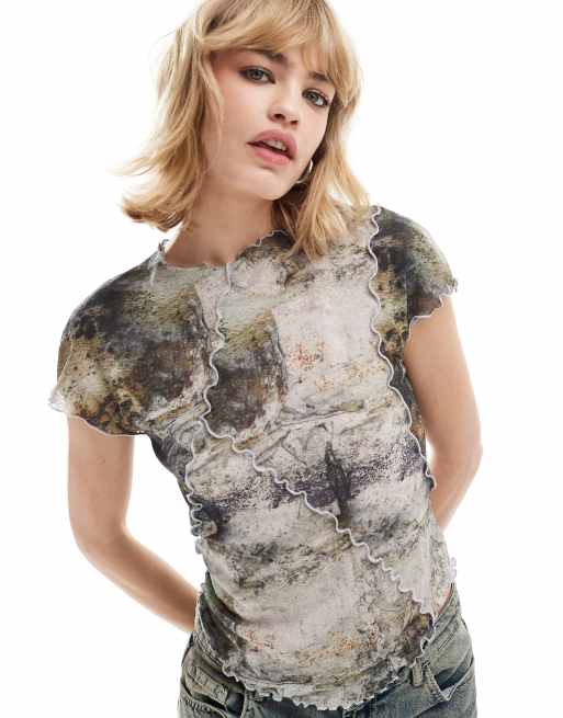COLLUSION - Tekstureret top med vingeærmer og abstrakt print