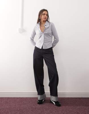 COLLUSION - Tætsiddende lyseblå skjorte med striber