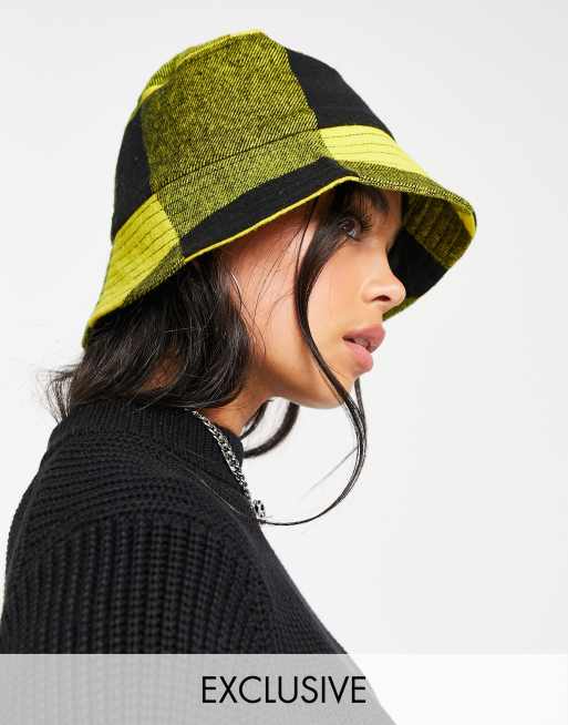 COLLUSION Unisex - Børstet bøllehat med gule og sorte tern