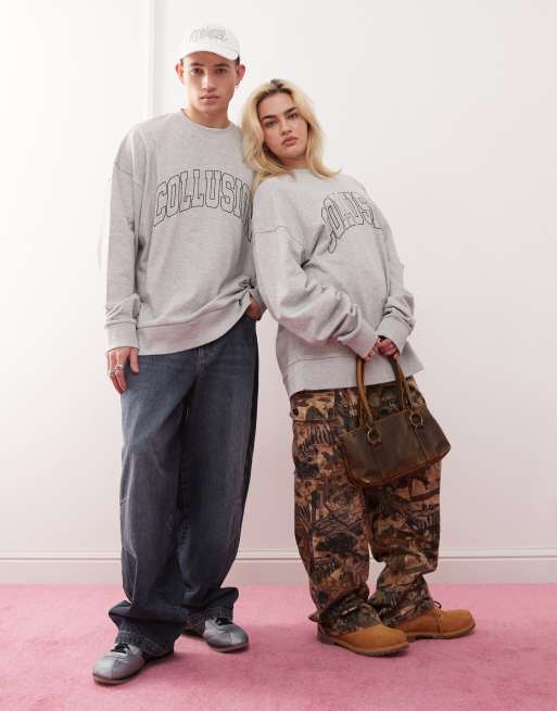 COLLUSION Unisex - Gråmeleret oversized let college-sweatshirt
