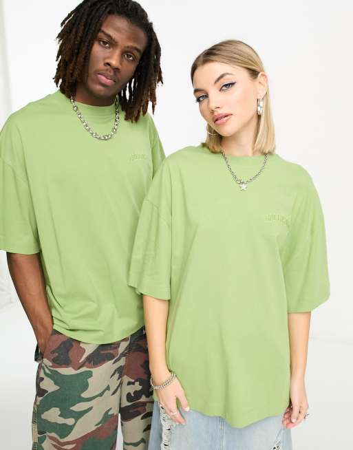 COLLUSION Unisex - Grøn T-shirt med broderet college-logo