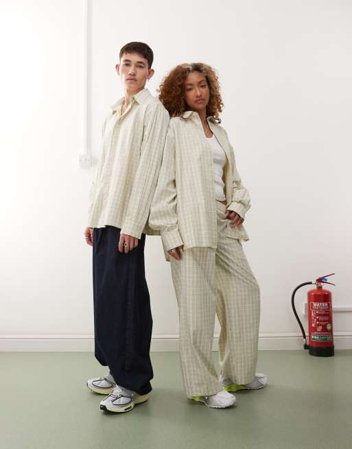 COLLUSION Unisex - Gul skjorte med lange ærmer og tern