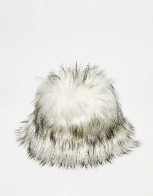 COLLUSION - Unisex - Hvid bøllehat i vamset, imiteret pels