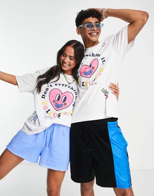 COLLUSION Unisex - Hvid T-shirt med 'Overthink'-print