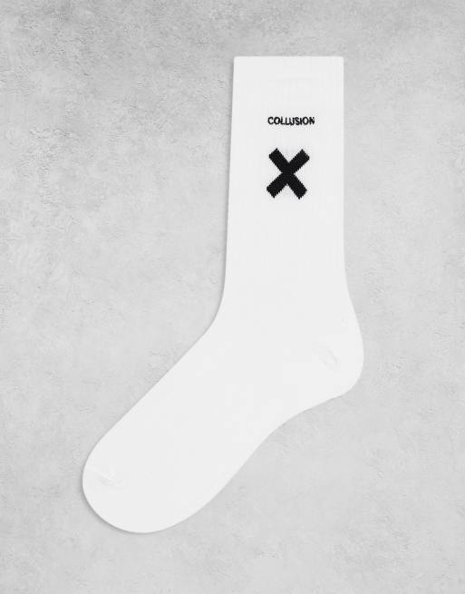 COLLUSION Unisex - Hvide sokker med logo