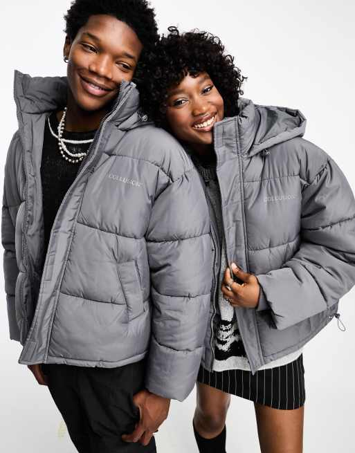 COLLUSION Unisex - Koksgrå dynejakke i nylon med branding