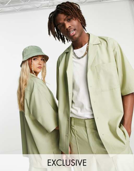 COLLUSION Unisex - Kortærmet firkantet skjorte i grøn - Del af sæt