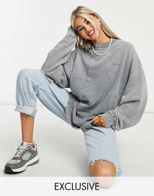 COLLUSION Unisex - Oversized sweatshirt med sømdetalje og asymmetrisk kant
