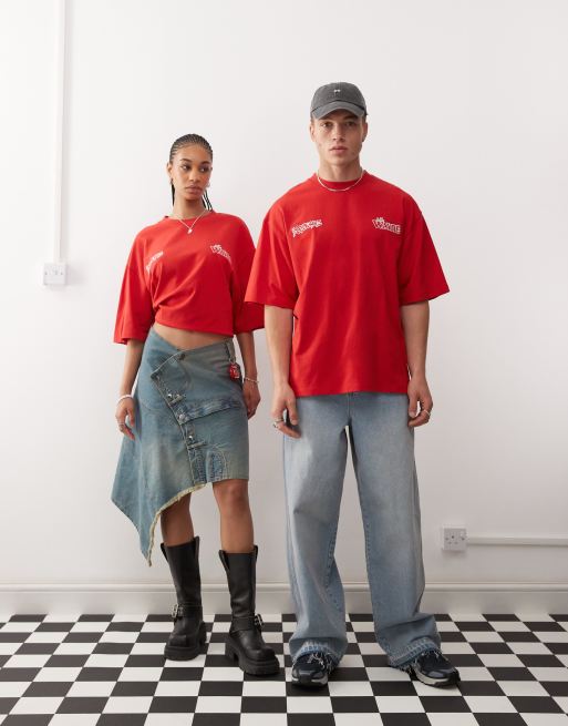 COLLUSION Unisex - Rød skater-T-shirt med officiel Lil Wayne-grafik på ryggen