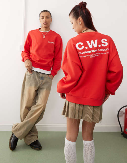 COLLUSION Unisex - Rød sweatshirt med grafisk print i firkantet pasform
