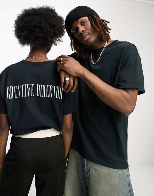 COLLUSION Unisex - Sort T-shirt med 'Creative Director'-slogan
