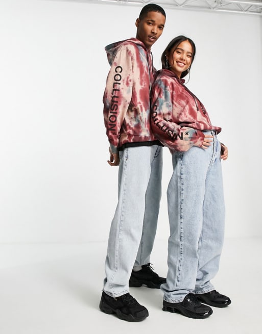 COLLUSION - Unisex-sæt i tie-dye med hættetrøje, T-shirt, joggingbukser og jakke med grafisk print