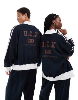 COLLUSION Unisex - Træningsjakke i marineblå og brun - Del af sæt