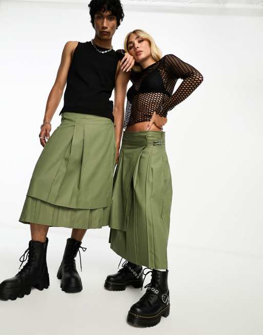 COLLUSION x TAMMY - Kakigrøn plisseret kilt-nederdel i unisex-stil