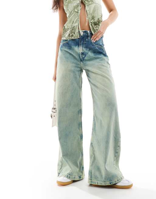 COLLUSION - x013 - Mid Rise festival-jeans med vidde i grøn vask