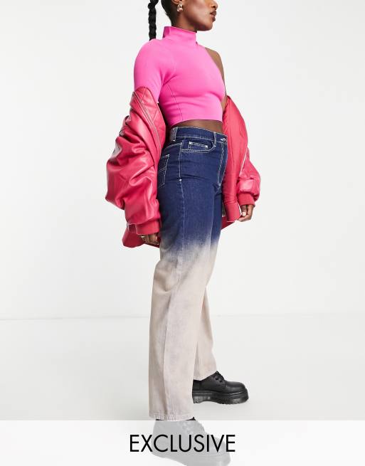 COLLUSION - x014 - Baggy jeans med blå og beige dip dye i 90'er-stil