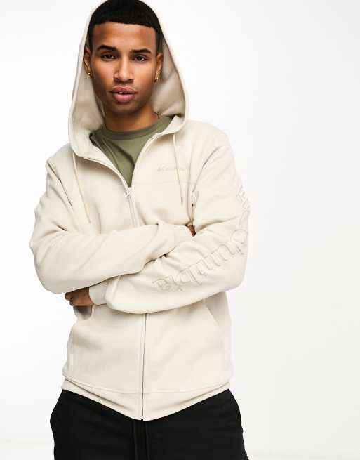 Columbia - Beige fleece med logo og gennemgående lynlås