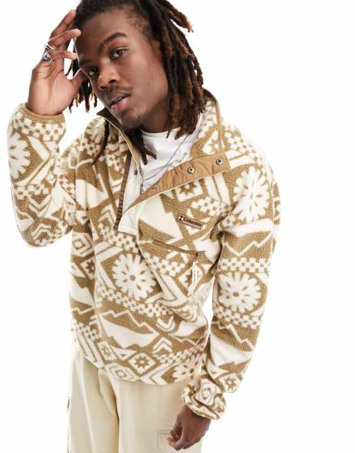 Columbia - Helvetia - Beige fleece med geometrisk print og halv knapstolpe med trykknapper