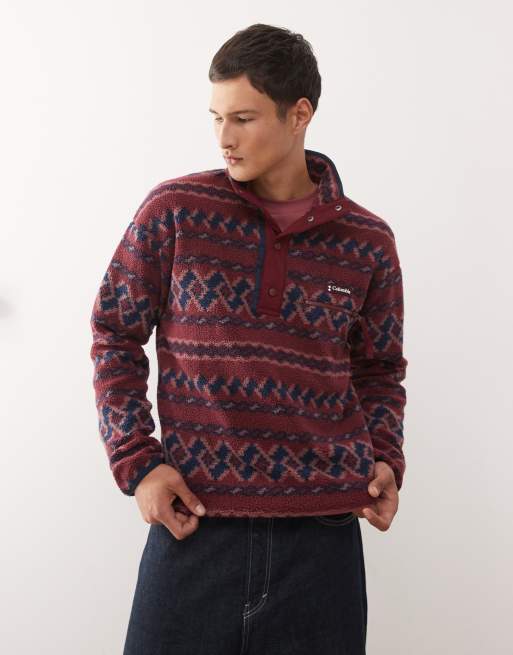 Columbia - Helvetia II - Bordeaux fleece med print og kort knapstolpe med trykknapper