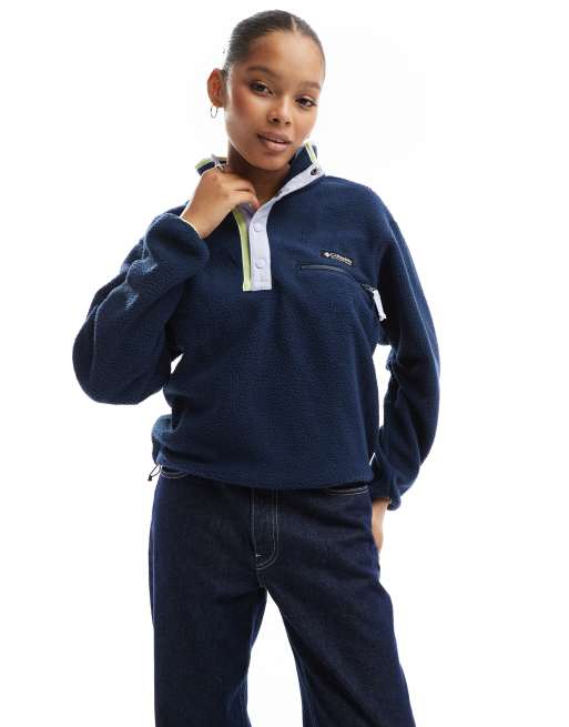 Columbia - Helvetia II - Marineblå cropped fleece-trøje med halv knapstolpe med trykknapper