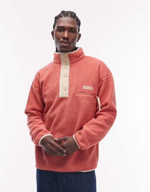 Columbia - Helvetia II - Rød cropped fleecetrøje med kort knapstolpe med trykknapper