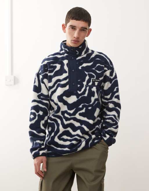 Columbia - Helvetia - Marineblå og beige fleece med halv knapstolpe med trykknapper og hvirvelprint