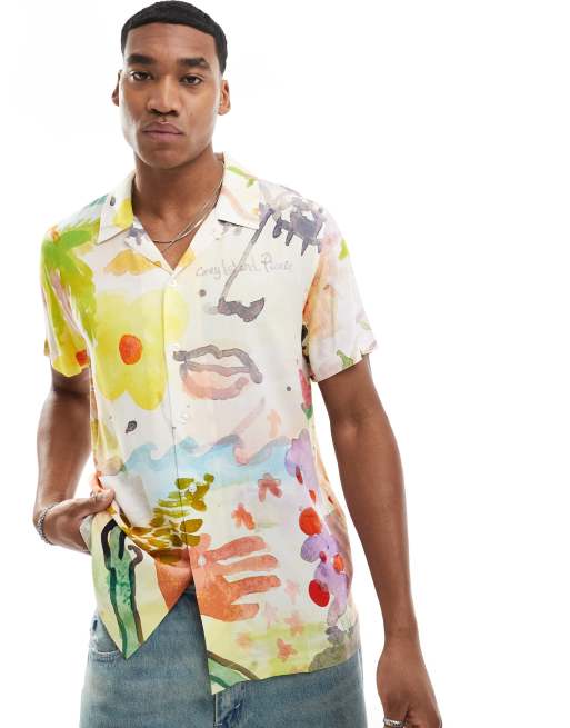 Coney Island Picnic - Multifarvet skjorte med reverskrave og vandfarveprint