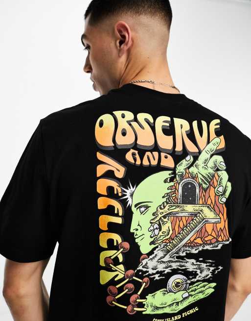 Coney Island Picnic - Sort kortærmet T-shirt med "observe and reflect"-print