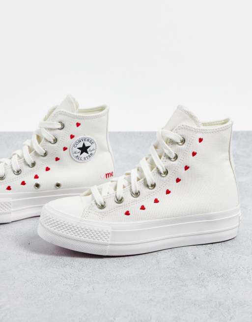 Converse Chuck Taylor Hi - Valentinsdag - Hvide flatform-sneakers og hjertebroderi