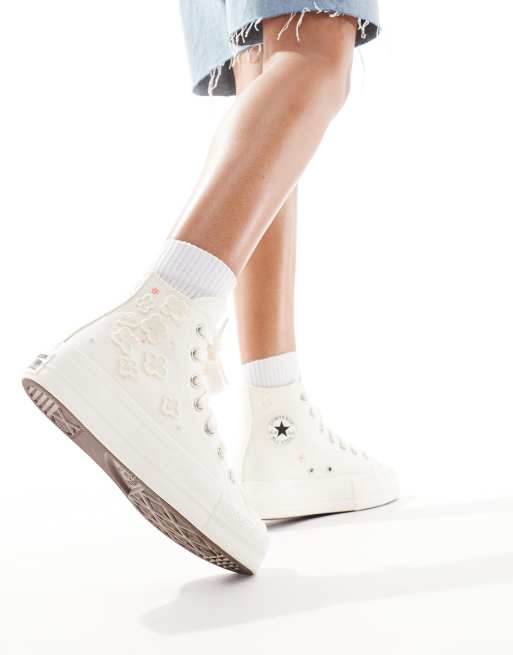 Converse - Lift Hi - Cremehvide sneakers med chunky snørebånd og blomsterdetaljer i organza