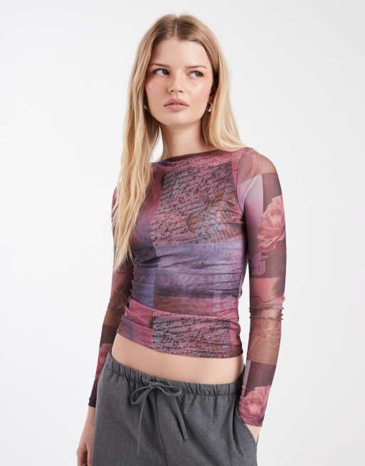 Cotton On - Ashley - Langærmet top i mesh med multifarvet blomstermønster