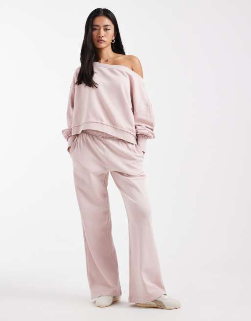 Cotton On - Forvaskede pudderrosa joggingbukser med brede ben - Del af sæt