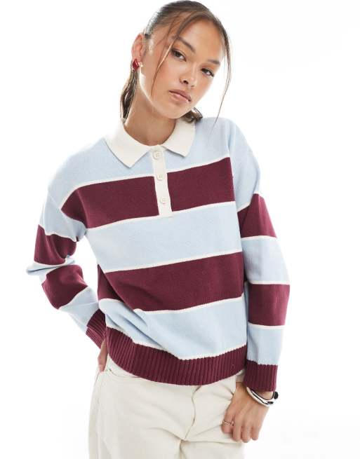 Cotton On - Langærmet polotop med kirsebærfarvede striber