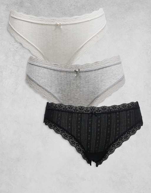 Cotton On - Multipakke med briefs i sort/grå/hvid i pointelle