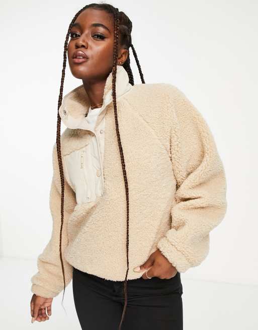 Cotton On - Active - Cremefarvet sweatshirt i imiteret lammeskind