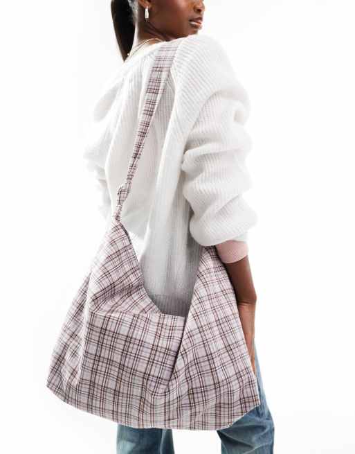 Cotton On - Alex - Lyserød løstsiddende tote-taske med knuder og tern i kanvas