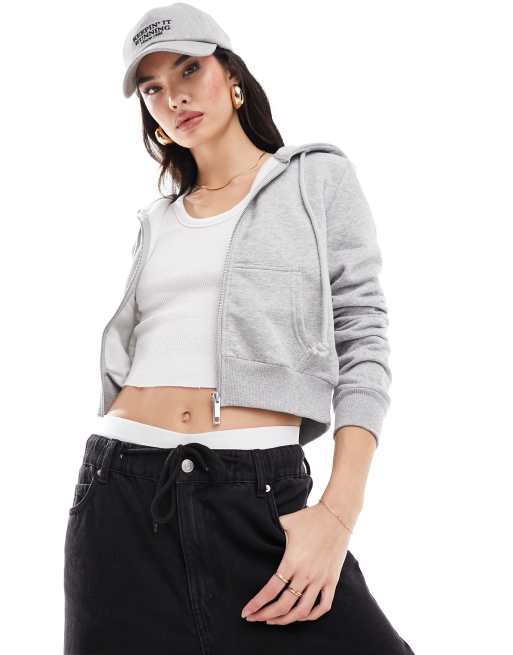 Cotton On - Gråmeleret og cropped hættetrøje med lynlås