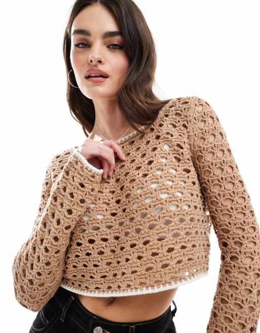 Cotton On - Lysebrun sweater med offshoulder-snit i åben strik