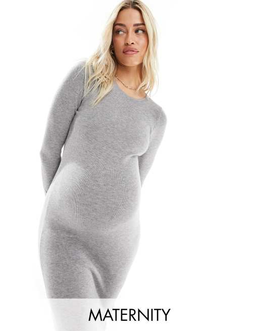 Cotton On Maternity - Strikket og mørkegrå midikjole med lange ærmer