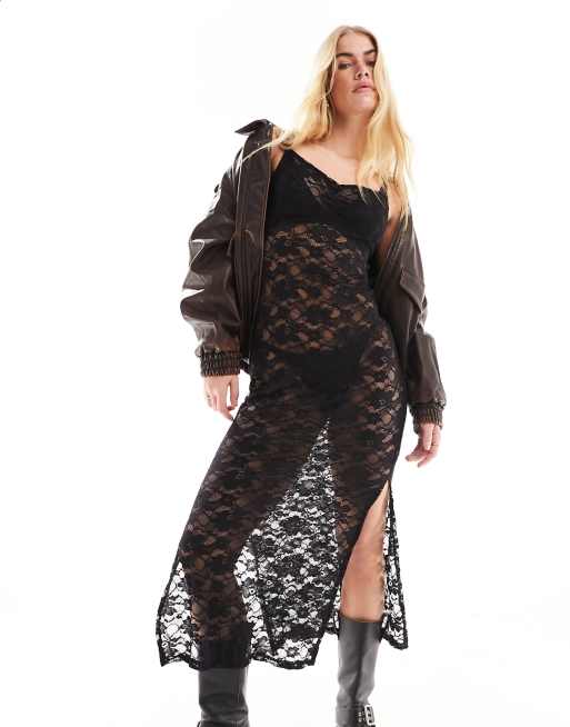 Cotton On - Sort midikjole med camistropper og gennemgående blonder