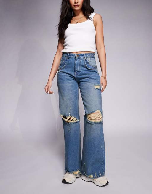 Courtside - Forvaskede blå jeans med ekstremt slidt finish og brede ben