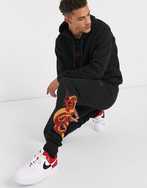 Criminal Damage — Sort træningssæt med broderet drage