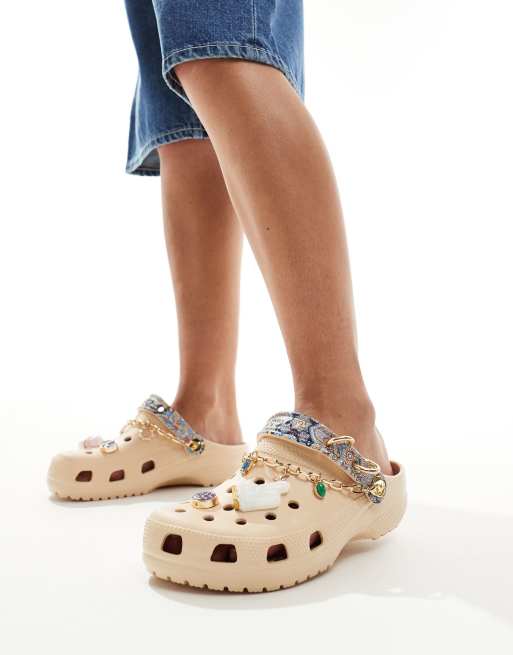 Crocs - Klassiske clogs med boho-vedhæng i beige - Kun hos ASOS